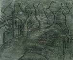 Árbol con iglesia y casas (anverso y reverso grabados)